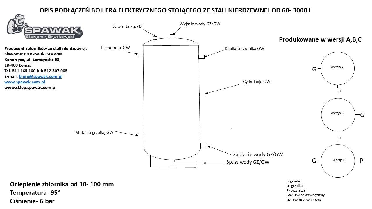 Wykonujemy bojlery elektryczne poziome i pionowe (wiszące na ścianie) oraz stojące od 60 do 2000 l.